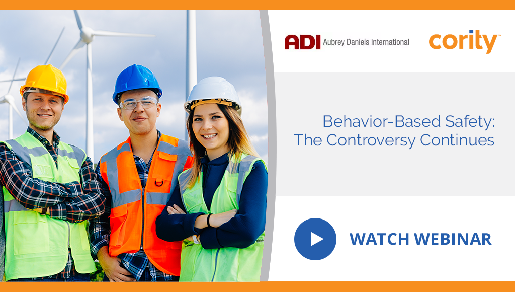 Cority recently hosted a webinar with the National Safety Council on the topic of Behavior-Based Safety and the effectiveness and value of this controversial safety methodology. Judy Agnew, Senior Vice President of Aubrey Daniels International, provides answers below to some of the great questions from audience members we didn’t have time to cover during the webinar.