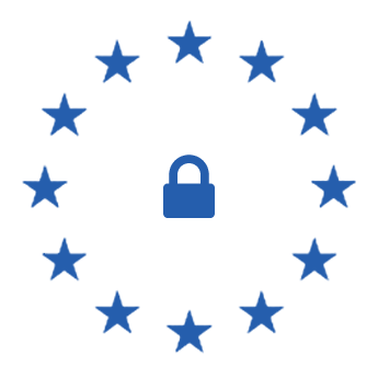 A blue padlock is surrounded by a circle of twelve blue stars on a light background, symbolizing data protection and security within the European Union.