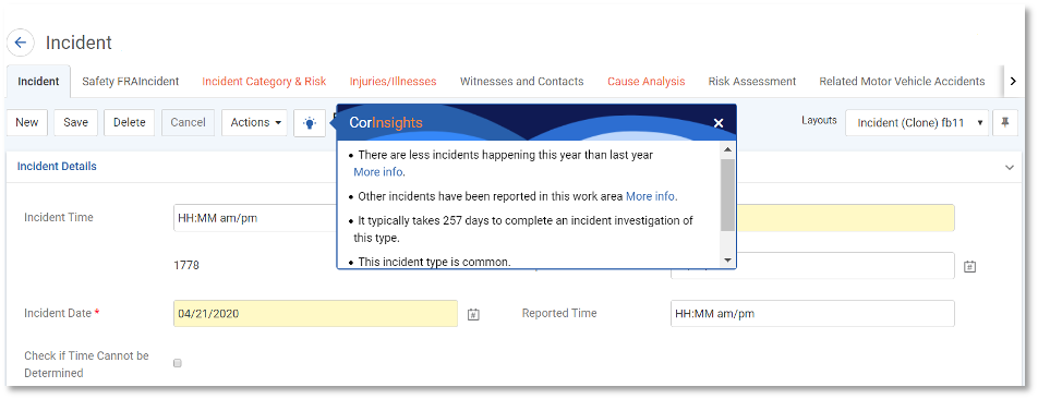 When investigating an incident, an EHSQ professional normally only has the perspective of that single event when considering what corrective actions to take to address the potential for recurrence. The user would need to navigate to another area of their management system to access additional data trends that could guide their decision making, breaking the workflow and reducing their efficiency. Now, by simply clicking the CorInsights icon, EHSQ professionals will have access to immediate, point-in-time insights relevant to that incident that will help them take the next steps to address incident recurrence with speed and confidence. CorInsights enables users to act quickly and intelligently to address their most critical issues without having to run separate analyses, saving time and money, and ensuring risk is acted upon proactively.