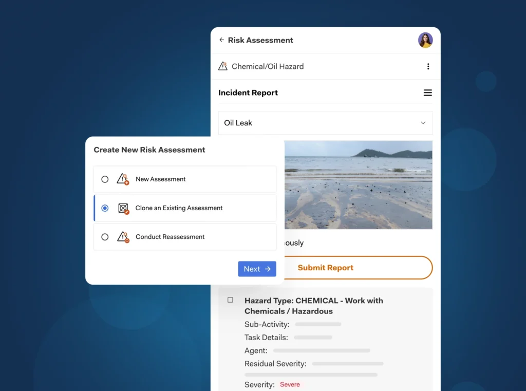 Perform risk assessments via mobile app with out-of-the-box validated checklists for JSA, HAZOP, FMEA, What-If analysis, and more — or easily configure your own. Automated risk scoring and trend analysis built in to help you spend less time on calculations and more time on prevention.