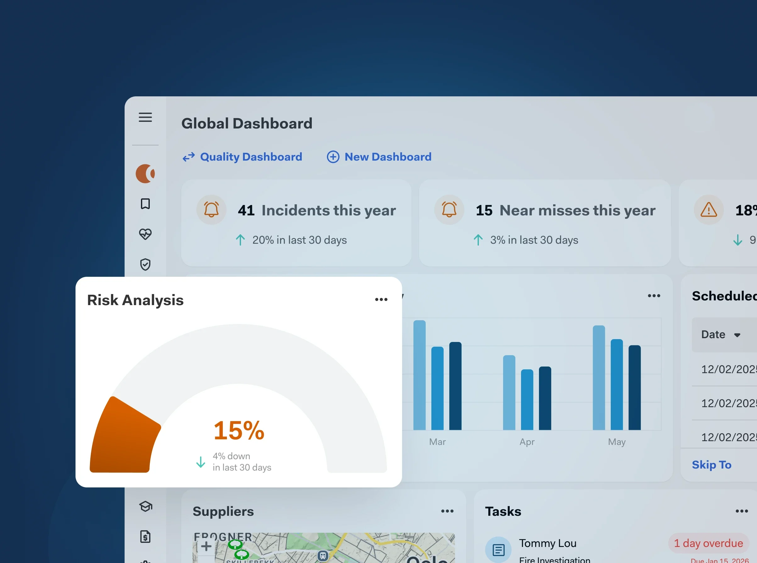 Get advanced real-time insights and reports. Track key risk management inputs and outputs for tasks, hazards, control measures, and more.